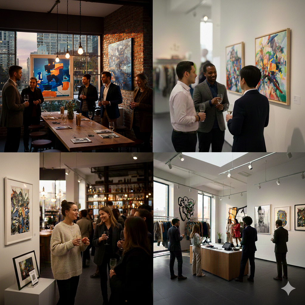 By moving art out of the traditional gallery and into the heart of the community, we transform the everyday spaces we love—our favorite bars, morning coffee spots, and local boutiques—into living cultural hubs. We transform local bars, cafes, and shops into vibrant destination points, giving artists a platform where people actually gather and giving businesses a unique, ever-changing soul that celebrates the neighborhood.
