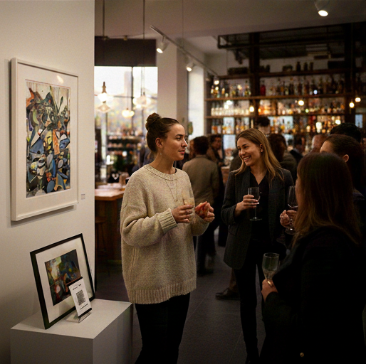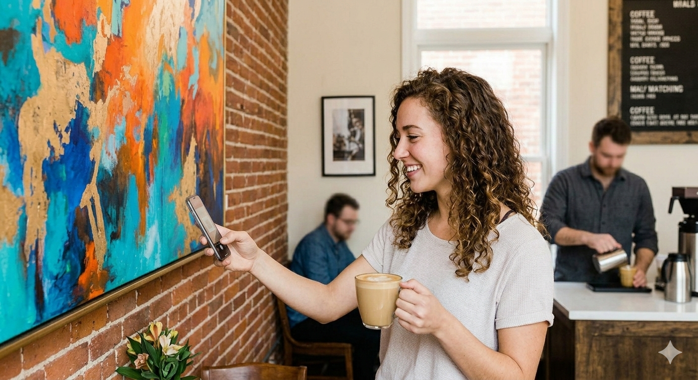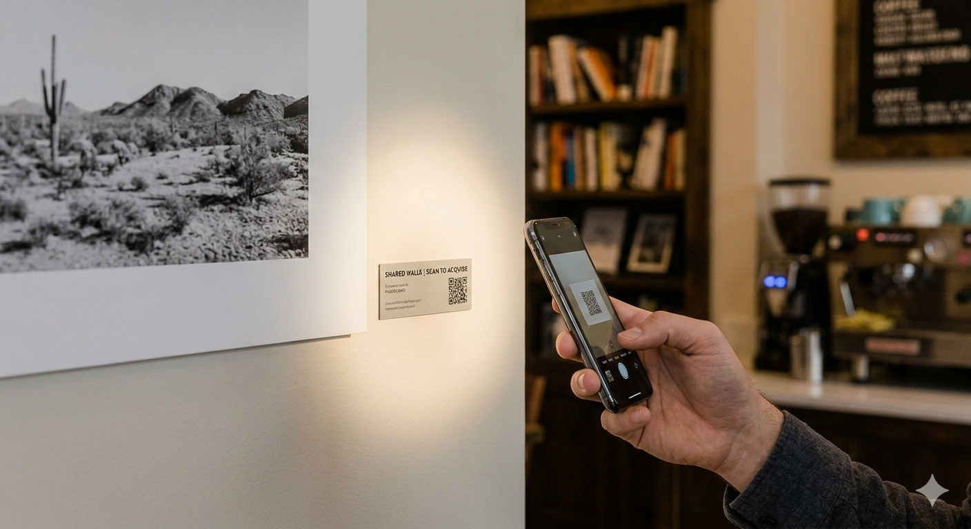 We connect artists with a platform where people naturally gather, and we curate the perfect art to fit the aesthetic of the local business. Best of all, we’ve made supporting these creators completely seamless. Through our integrated digital sales platform, guests can discover and purchase artwork directly from the wall using their mobile devices. This allows the art to find a new home without ever interrupting the flow of the business or the service of the staff, keeping the focus on the experience and the community.